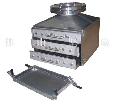 坚磁除铁器是采用优质不锈钢管和高B值稀土合金钕铁硼等材料,经过特殊的生产制作工艺制作而成的磁性过滤棒,固定在优质不锈钢框架中,构成磁性过滤器。将其安装在生产线输送管道中或出料口处,当含铁物质通过时,受到磁力棒的吸引,将含铁的物质完全吸附在管壁上,以达到除铁的目的,保证了设备的完好和产品的安全性。